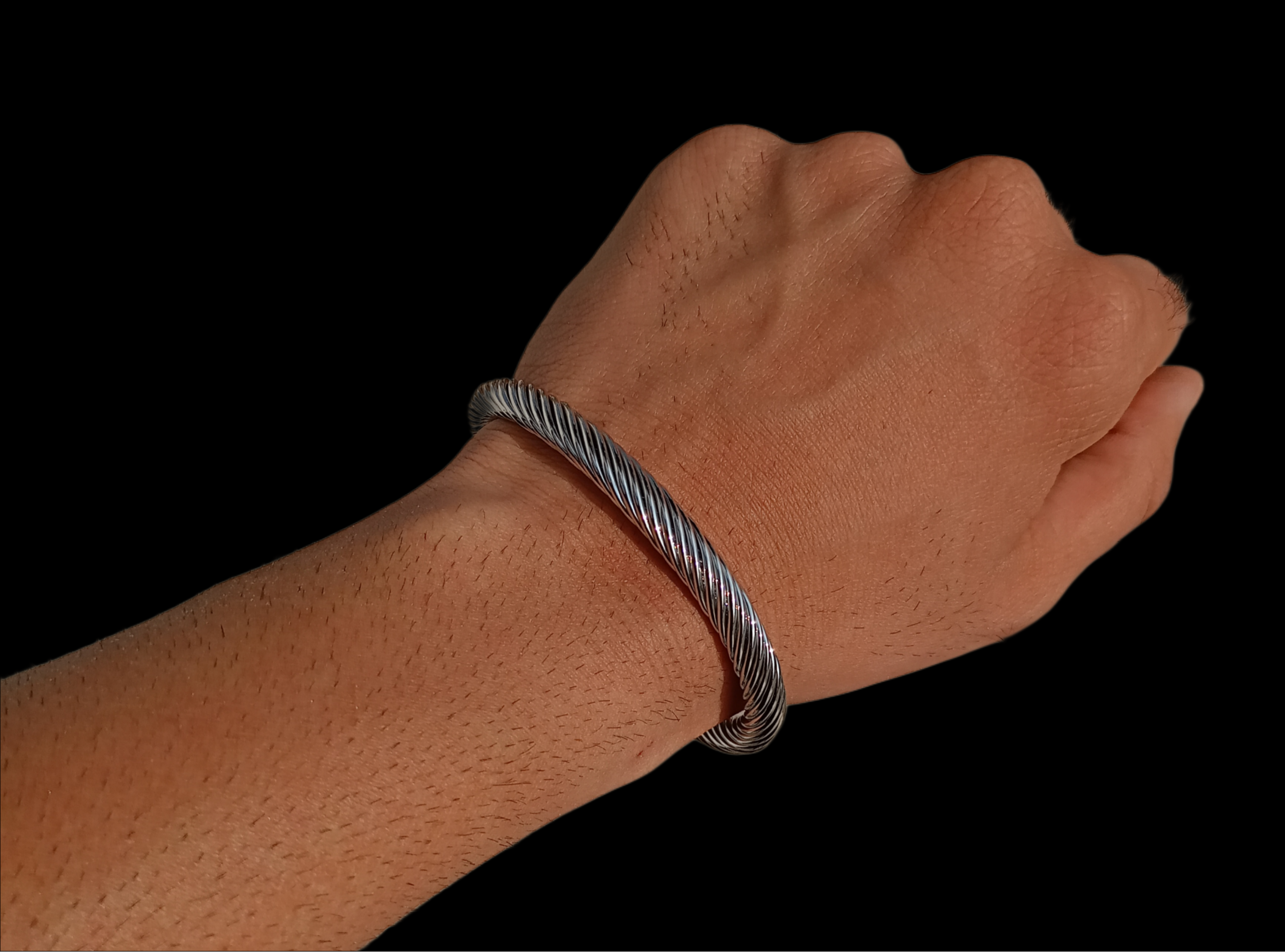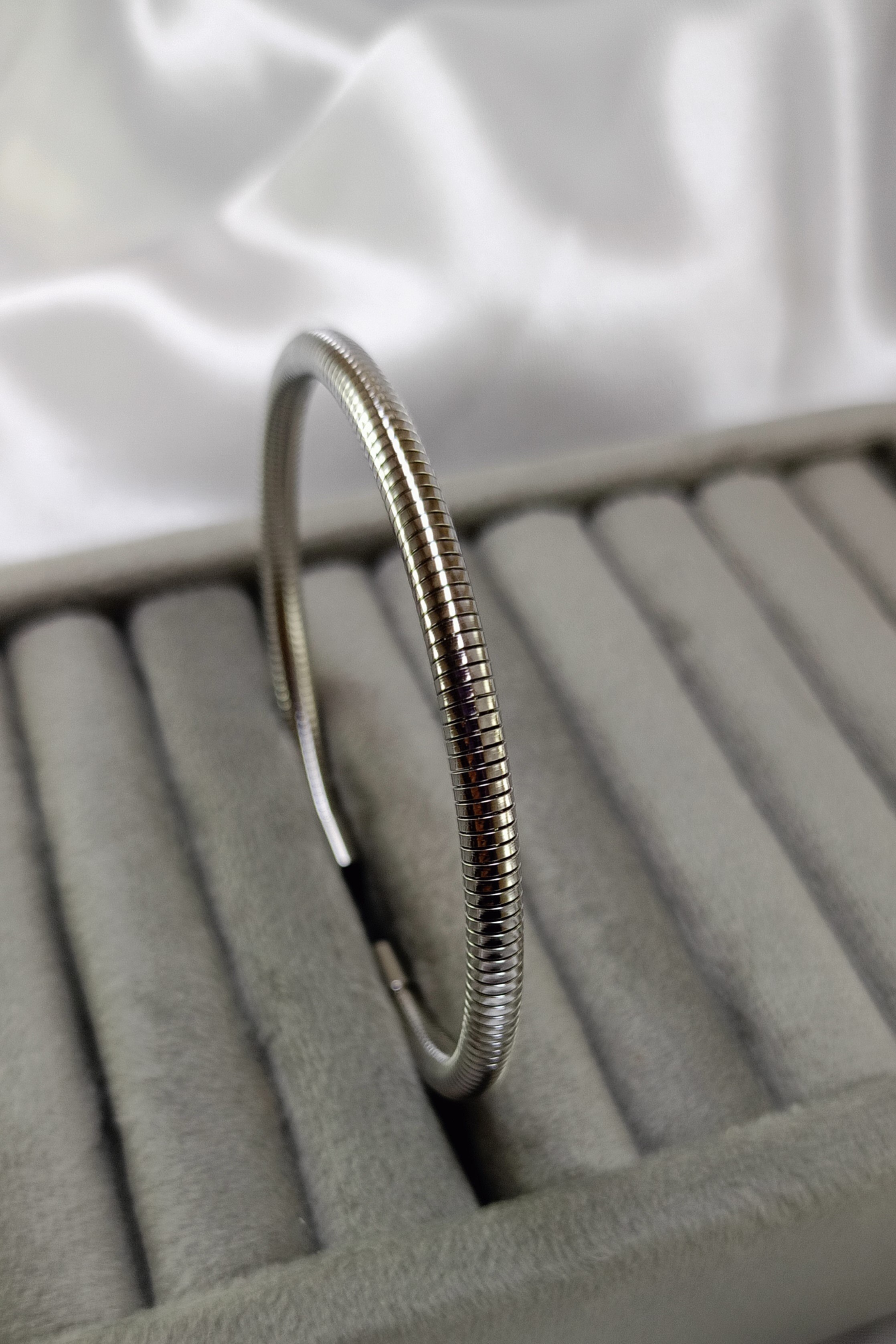 بنگل استیل یونیسکس نقرهای طرح فنری