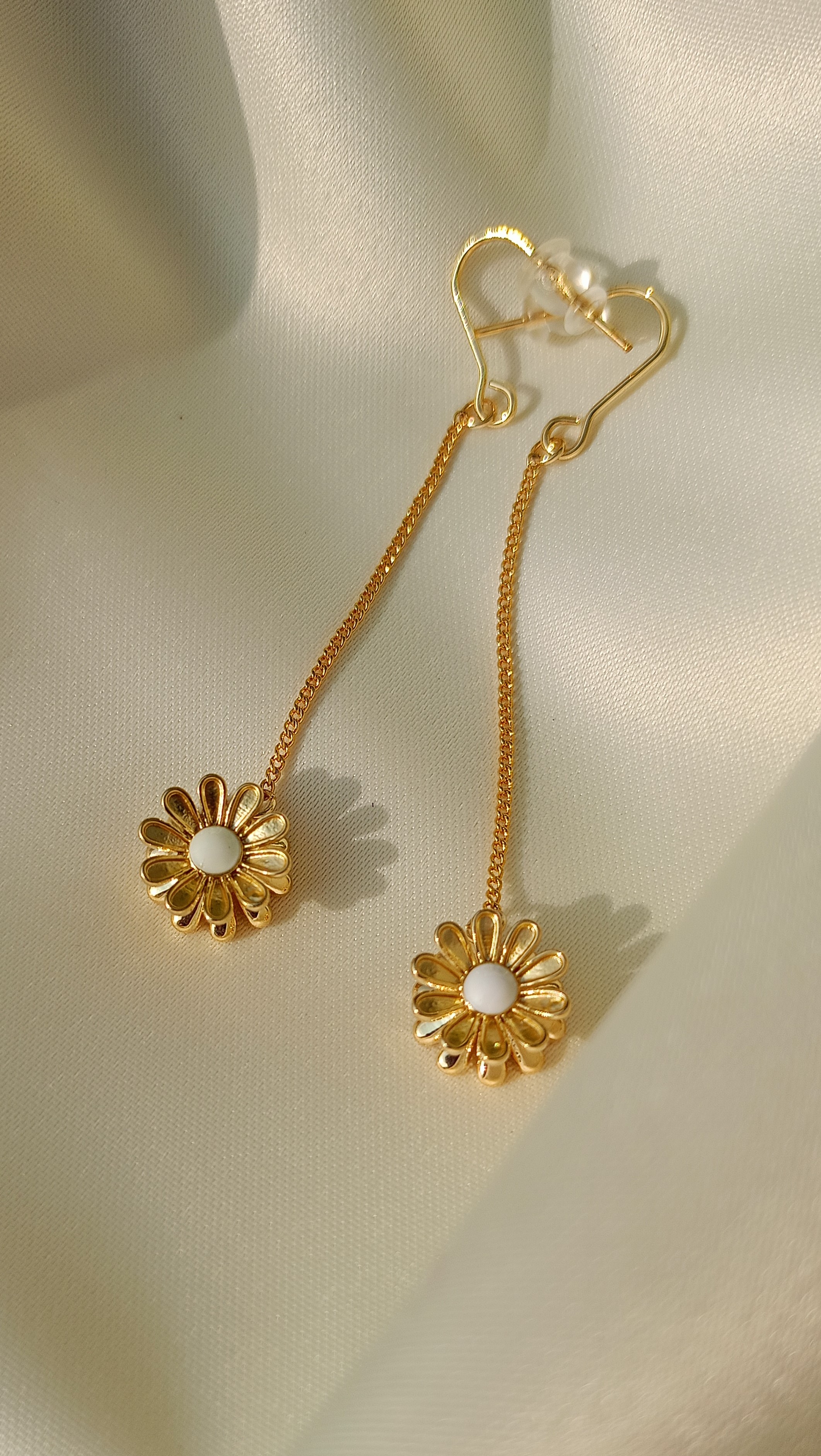 گوشواره استیل دخترانه مدل گل بابونه | آویز زنجیری ظریف و ضد حساسیت