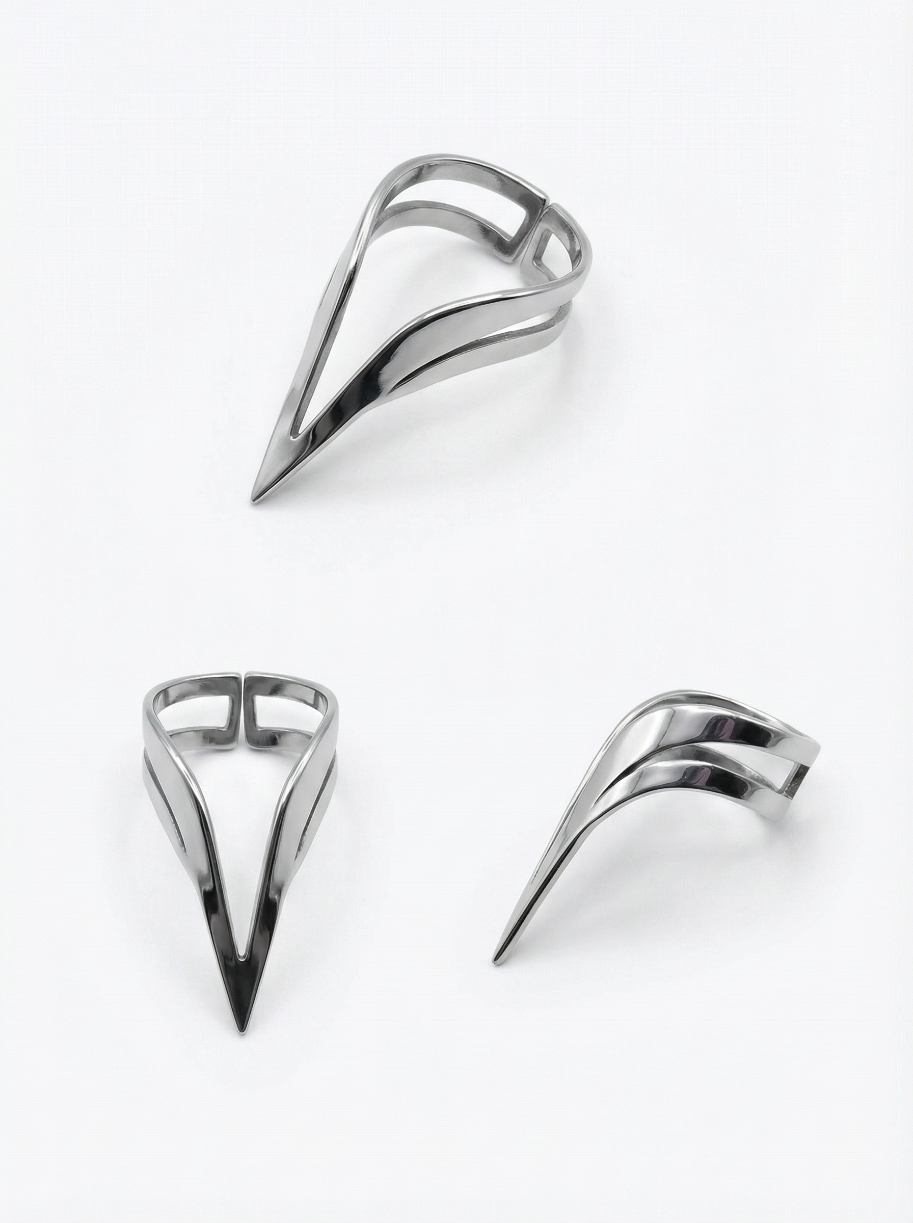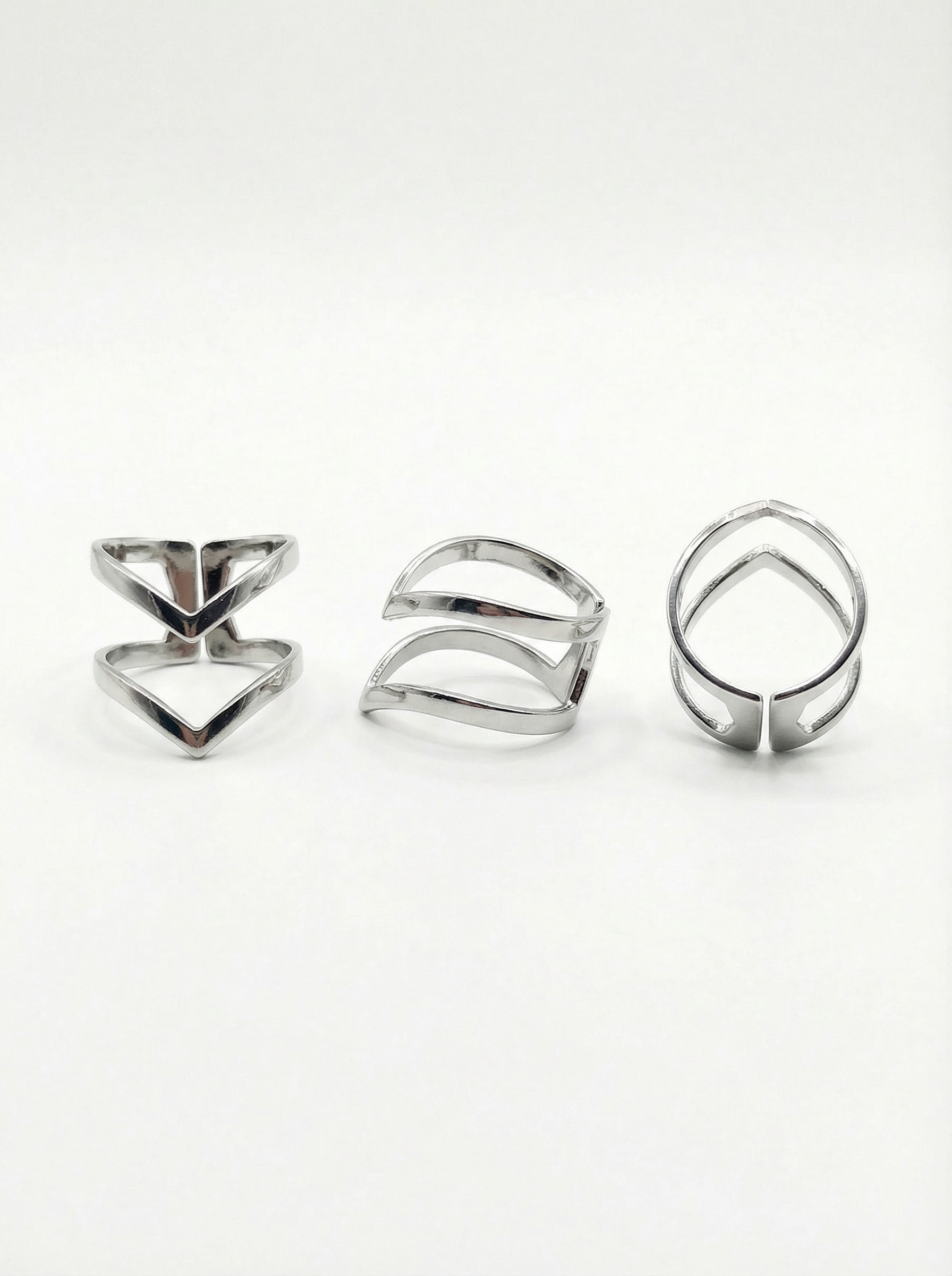 انگشتر استیل دو لاین منحنی باز (Free Size)