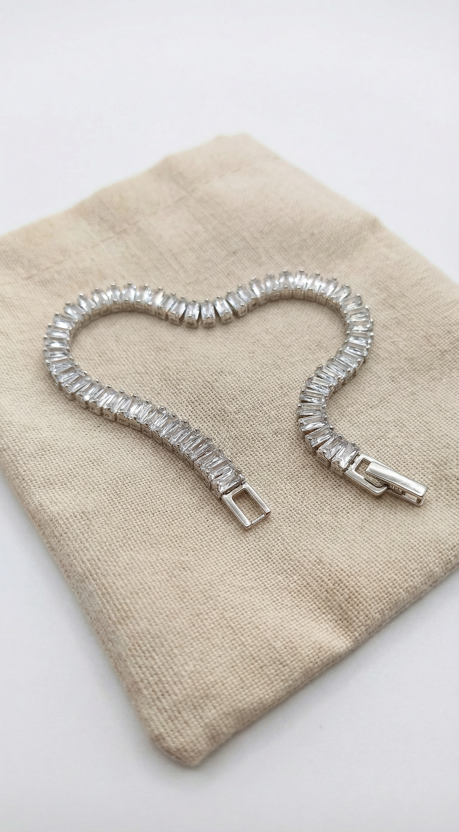 دستبند تنیسی استیل نقرهای نگیندار | طرح کلاسیک براق