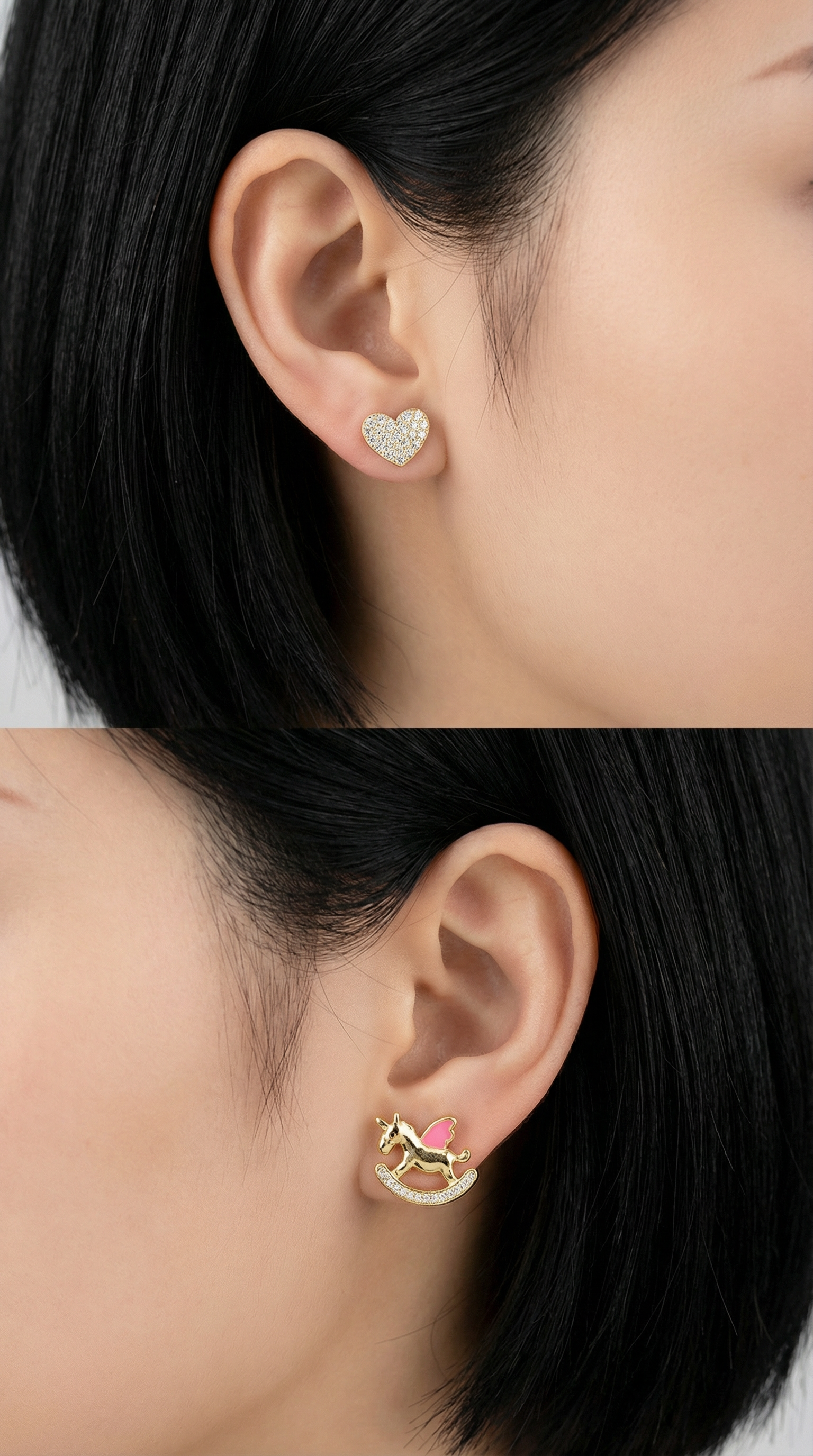 گوشواره وایت کوپر مدل یونیکورن و قلب نگیندار