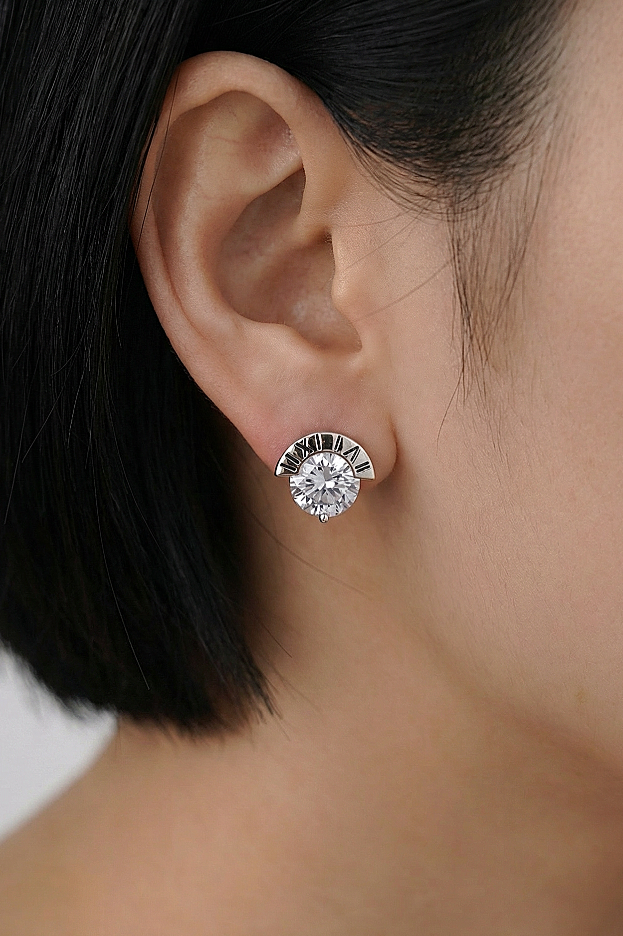 گوشواره میخی وایت کوپر طرح نیمه ماه نگین سفید