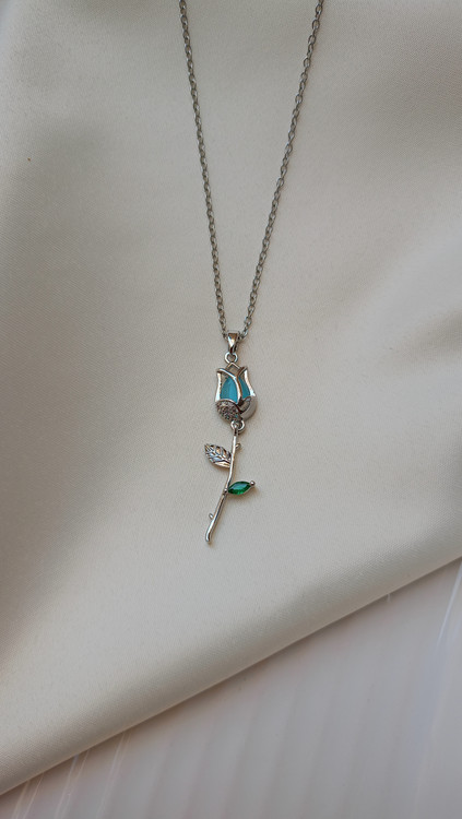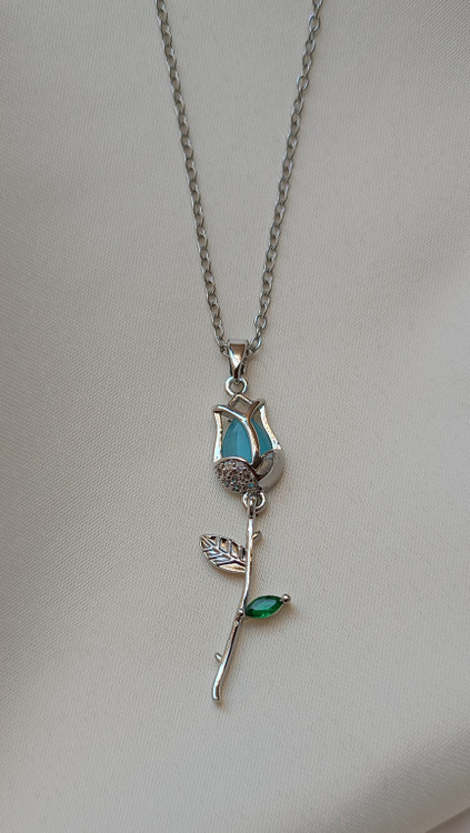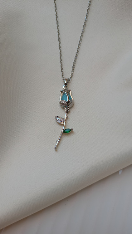 این گردنبند طرح گل رز، یک انتخاب ظریف و چشمنواز برای کساییه که عاشق اکسسوریهای خاص و دخترونه هستن. آویز رز با ترکیب رنگی آبی و سبز، جلوهای متفاوت به استایل میده و حتی با سادهترین لباسها هم خودش رو به چشم میکشه.