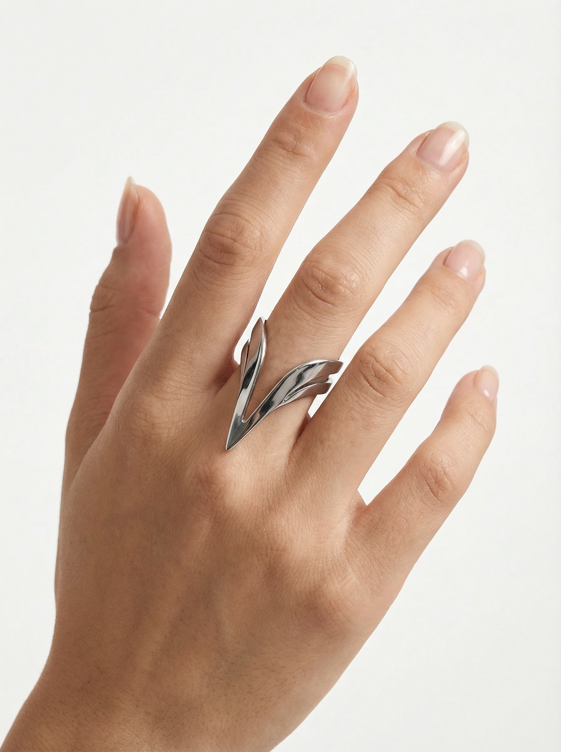 این انگشتر استیل با طراحی V شکل نوکتیز، انتخابی جسورانه برای کسانی است که به استایلهای مینیمال اما خاص علاقه دارند.